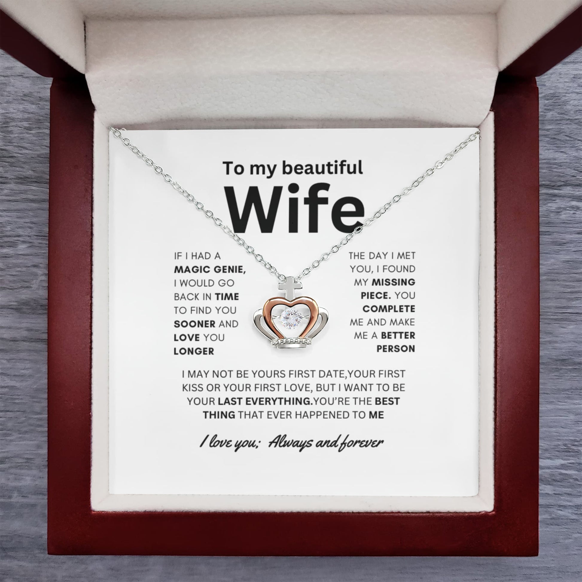 Imagine her reaction receiving this stunning Crown Pendant Necklace. Designed to resemble a regal crown, this exquisite piece features a dazzling cubic zirconia crystal at its center, catching the light with every movement. The delicate blend of silver and rose gold tones adds a touch of timeless beauty, making it the perfect gift for someone who reigns over your heart.